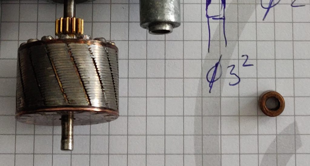 Nadat ik het het hele ding volledig uit elkaar heb gehaald en de onderdelen door het ultrasoon bad heb gehaald zie ik dat het eindlagertje van de rotor ovaal geworden is en het asje van de rotor is 0,3mm kwijtgeraakt van 27 jaar feestgedruis. Zodanig dat er lichte slijpsporen te zien zijn op de rotor. Die heeft dus de stator geraakt. Zou dat de oorzaak van het probleem zijn?