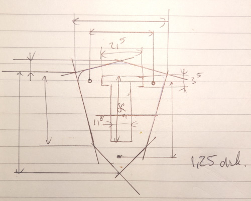 Maar zoals ik dat vaak doe, eerst de basis als een ruwe schets op papier zetten. In dit geval gebruikte ik één van de kapotte base plates als tekenmal.
